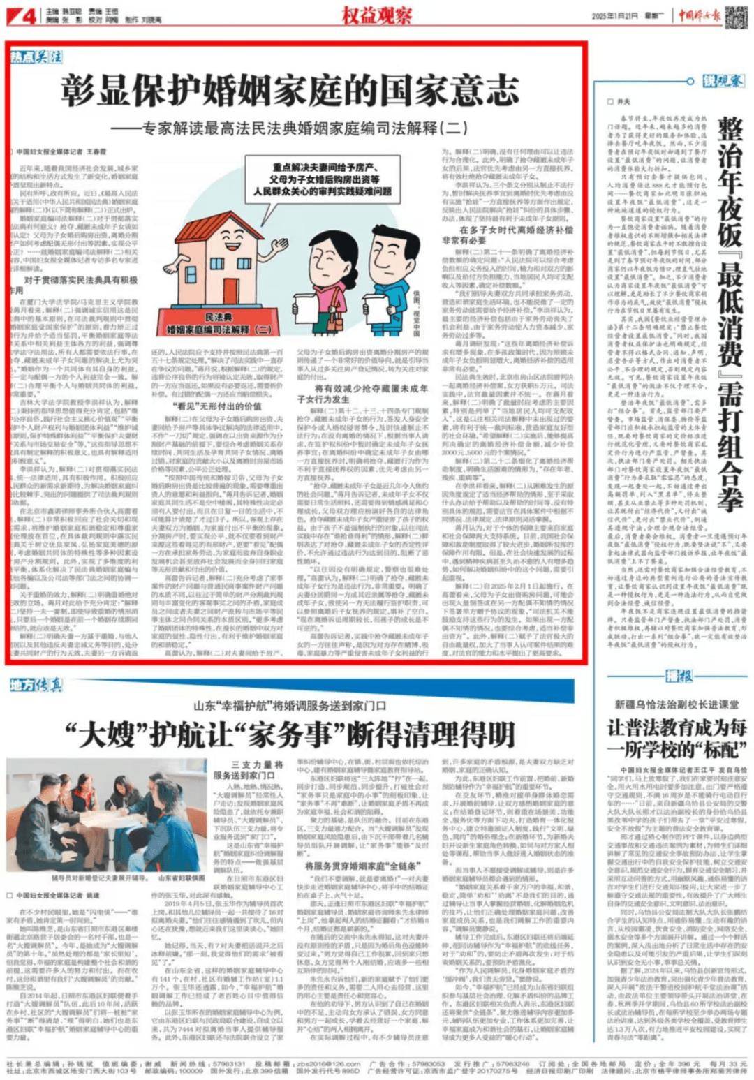时值第四次世界妇女大会召开暨《宣言》取《步履纲要》通过三十周年,2025年显得尤为特殊。2025年10月13日上午,国度习正在出席全球妇女峰会揭幕式并颁发宗旨讲话。为第四次世界妇女大会,贯彻落练习总正在全球妇女峰会的宗旨讲话要求,鞭策我国反家庭法进一步落实,2025年11月21日,最高发布2025年中国反家暴典型案例,沉申国度对家庭零的明白立场。2025年,最高法发布平易近法典婚姻家庭编司释(二);取全国妇联成立婚姻家庭胶葛“总对总”正在线诉调对接机制,结合发布4件未成年益司法救帮典型案例;发布第四批鼎力社会从义焦点价值不雅典型平易近事案例,家风文明、职场文明、准确婚恋不雅等;发布5件加强未成年人分析司法典型案例、6件涉校园办理胶葛典型案例、8个涉校园食物平安典型案例等;依法性侵害未成年人犯罪,上海市长宁区华东大学从属中学,让青少年普法愈加无形无效。司法是社会公允的最初一道防地。山西“订亲案”,依法裁判,用思维“订亲就有性”“彩礼”等错误不雅念。