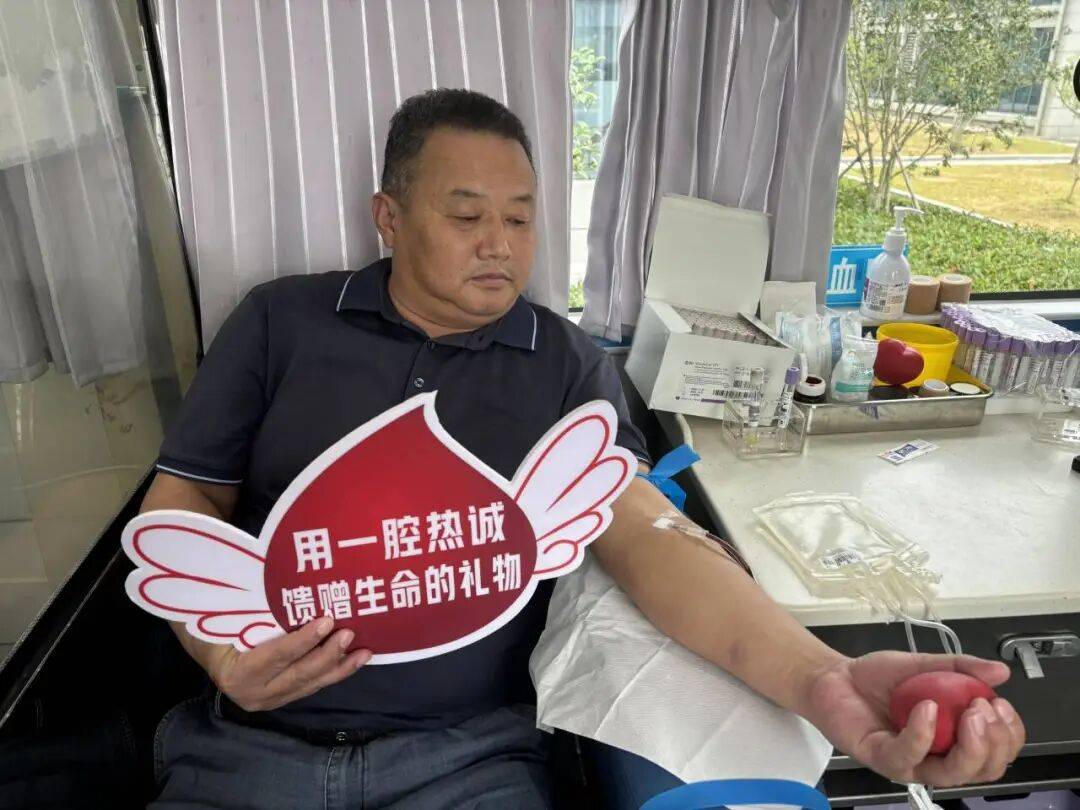 正在献血车上花圃村村郭正权挽起衣袖,再次成功献血400毫升血液。他笑着说道:“我们村干部就得带头,既能帮人又能给大伙儿做个样子!”?。